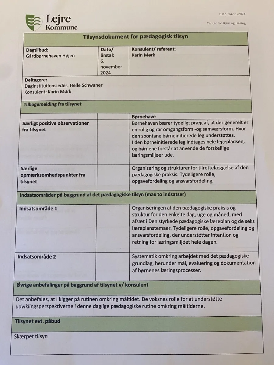 Vi har på mødet med Lejre kommune den 13/5 2025, fået ophævet det skærpede tilsyn på baggrunnd af de strukturelle ændringer vi har lavet.